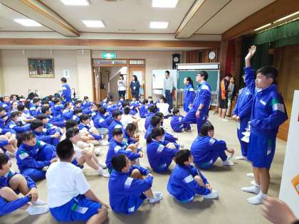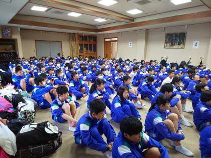 入村式前の健康観察の様子です。