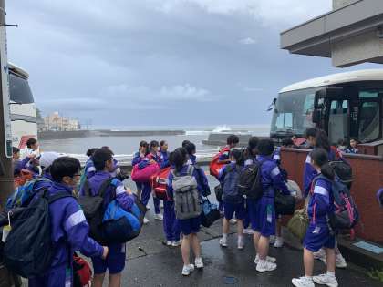 天城が交通止めのため、迂回し、予定よりかかりましたが、その分バス内で盛り上がりました。