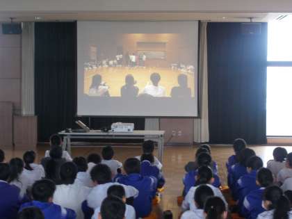 教員の編集したビデオを見て、振り返りをしています。