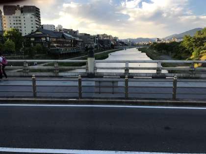 五条大橋を渡っています。18時16分、ホテルに向かっています。