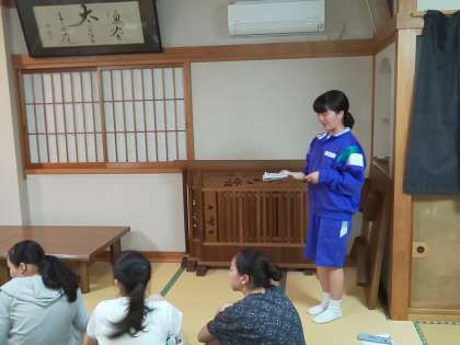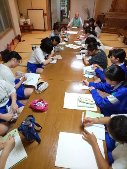 自分たちの発表の後は、民宿の方から河津についてのお話をしていただきました。大変貴重なお話で、皆、興味深げに聴いていました。この5月で宿を閉めるもいうお話もうかがい、最後のお話を聴けたことも何かの縁だと感じました。ありがとうございました。