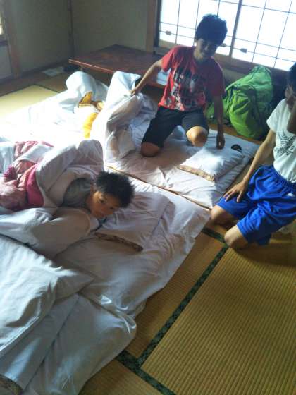 おはようございます。夜は疲れてすぐ寝た人もいれば、興奮からなかなか寝付けない人もいたようですが、朝しっかり起きて身支度をしています。