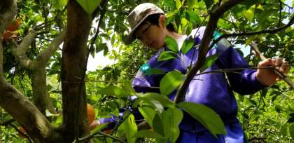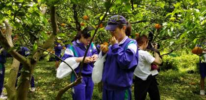 みかん狩りの様子です。おいしそうなみかんです。