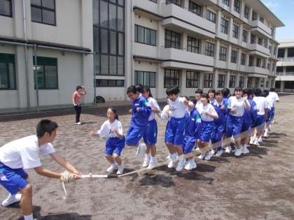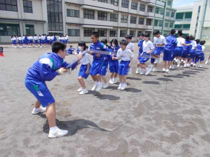 1年生は雨天で延期になっていた学年レクの長縄がやっとできました。