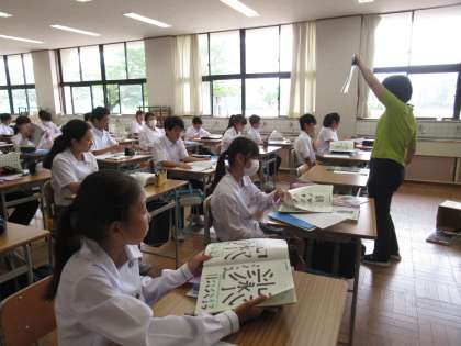 「校区にある看板の写真や新聞、広告の見出しの文字が、なぜ美しく読みやすいのか。」という問いを共有しながらレタリングの基本字体ゴシック体について理解を深め、実際に描いてみました。