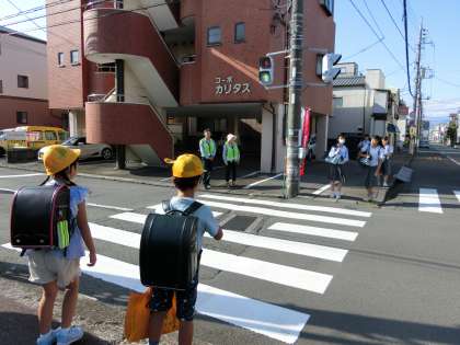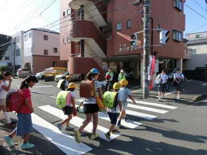 今日は7月10日。第五校区あいさつの輪の日です。通学路のあちらこちらに地域の方々がのぼり旗を持って立ってくださっていました。小学生も中学生もあいさつを交わしながら登校していました。