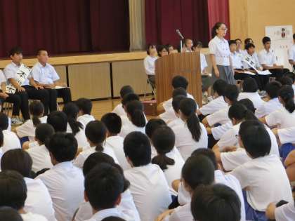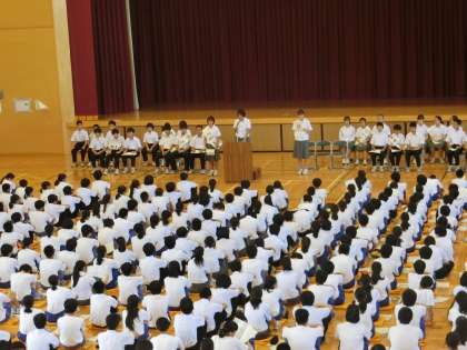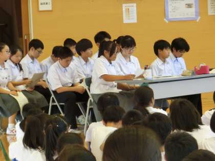 7月10日第6校時に、選挙管理委員の皆さんの進行のもと、後期生徒会選挙立ち会い演説会が行われました。