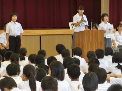 候補者の演説の様子です。2年生、1年生の候補者も頑張りました。