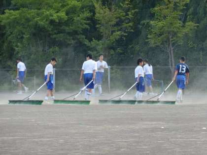 サッカー部の様子です。今日の練習に感謝し、明日のためにグラウンドを整えて活動を終わりました。