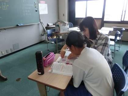 国際室の授業風景です。3年生が理科の学習を進めていました。難しい理科用語の意味を辞書を使って調べたり、先生にやさしい日本語や英語で説明してもらったりしながら理解を進めていました。