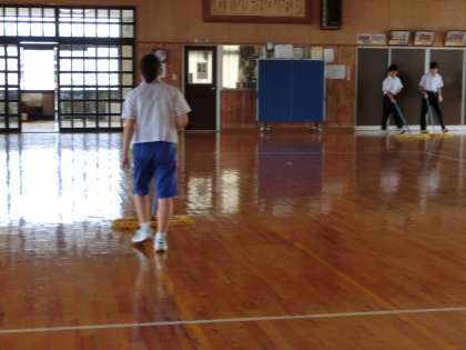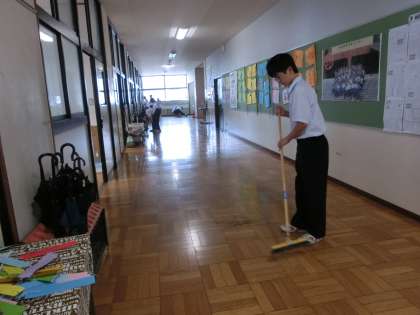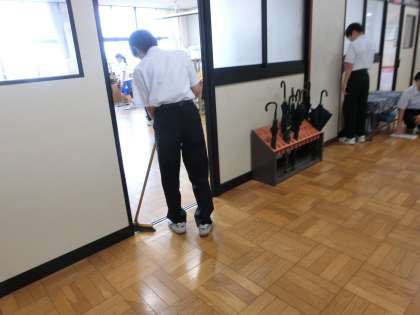 金曜日は黙働清掃の日です。8時から10分間、無言で清掃に取り組んでいます。小中一貫教育の取組の1つです。