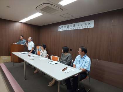 本日、日枝神社にて第五南地区の「地域懇談の集い」が行われました。第五校区の保護司様が司会進行を務め、五中・五小の地域の方、保護者、教員とで、地域社会の問題について語り合いました。