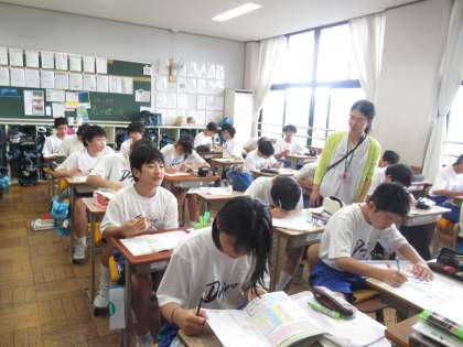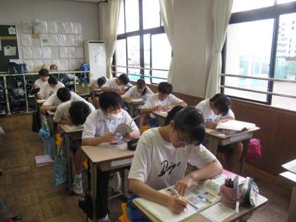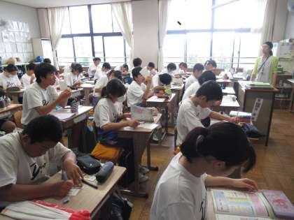 今日は、郵便局から出されている「手紙の書き方」というテキストを使い、暑中見舞いの葉書の書き方を学びました。