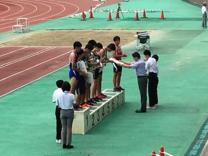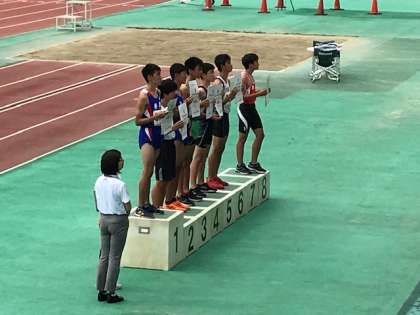 陸上競技県大会2日目です。昨日行われました男子4種競技の表彰が行われました。6位入賞、おめでとうございます。