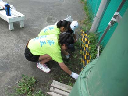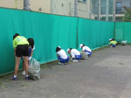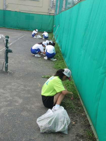 今日は、自分たちコートの環境整備から入りました。草取りを丁寧にしていました。