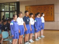 始業式後は、防災訓練が実施されました。今日は、突発性の地震発生を想定して行い、大津波警報が発表されたときの避難方法も確認しました。