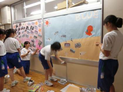職員室前で蓼原祭広報係の皆さんがファミリー掲示板の作成に取り組んでいました。どのファミリーもそれぞれにデザインが工夫されています。よく見ると、先生方も登場しています。楽しい掲示板になっているので、ぜひ、ご覧ください。
