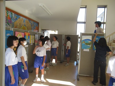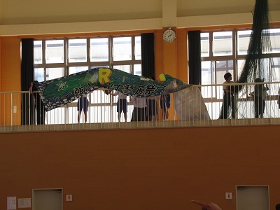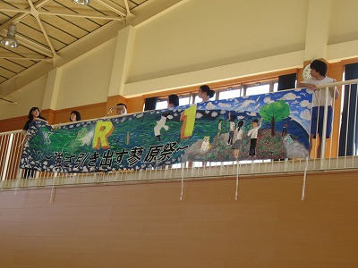 美術部は作成した横断幕、作品を掲示していました。横断幕、力作です!