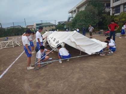 テント張りの様子です。PTA本部役員の方がお手伝いに駆け付けてくださいました。朝早くから、御協力ありがとうございます。
