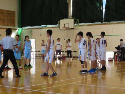 本日、大平中学校体育館において、沼津市スポーツ祭男子バスケットボール大会が行われました。1試合目は大平中と対戦して、109対6、大差で勝利を掴みました。2試合目はクラブチームのASEが相手です。試合が始まりました。