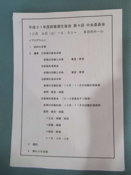 前後期生徒会第4回中央委員会(10/8)