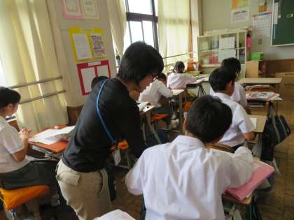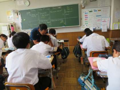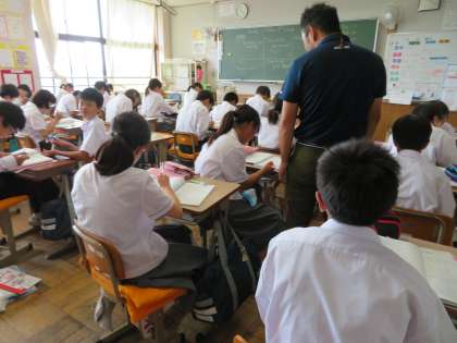 1年2組の英語の授業の様子です。Does〜?の確認をしていました。中間テストに向けてしっかりと復習していました。