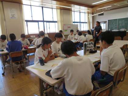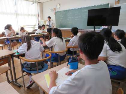 1年生の学活の様子です。24日、25日に行われる職場見学について、事業所名、見学時間、学校出発時刻、学校到着予定時刻、持ち物などを確認していました。
