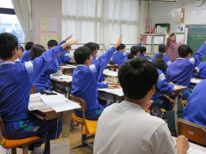 3年4組、社会科の授業の様子です。「裁判はどのような手続きで進むのか。」という課題のもと、民事裁判と刑事裁判を比較しながら理解していました。