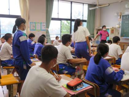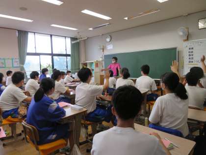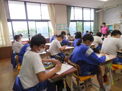 3年1組、保体の授業の様子です。「健康とは?」という課題のもと、話し合っていました。思いついた健康な状態を社会的文化的側面、生物学的側面、科学的側面、物理的側面に分類して、考えていました。ストレスの多い現代社会だからこそ、心も体も健康でいるための正しい知識を身に付け実践したいと思います。最後は自分の生活を見つめてまとめていました。