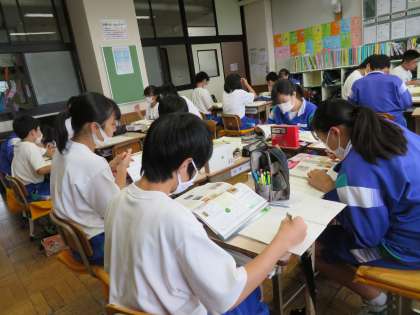 3年4組、国語の授業の様子です。万葉集から柿本人麻呂の歌を読んでいました。どのような思いが隠されているのか、話し合っていました。