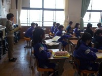 1年4組、国語の授業の様子です。吉橋通夫『ぬすびと面』を読んで、「文吉はどんな人なのだろう。」という課題を追究していました。面打ち師であること、若いが評判がいいことなどを読み取り、ぬすびと面がなかなか打てないのはなぜか考えていました。友達と交流して深めていました。
