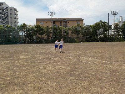 トラックでは陸上競技部がリレー形式の練習をしていました。さすが陸上競技部です。きれいな走りを見せてくれました。