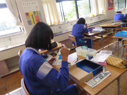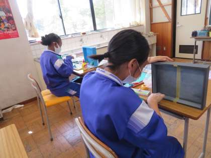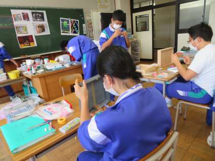 3年1組、美術の授業の様子です。「自分の世界観をどのように表現するか?」という課題のもと、BOXアートの創作活動に取り組んでいました。それぞれの個性あふれる作品を期待しています。