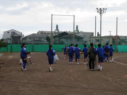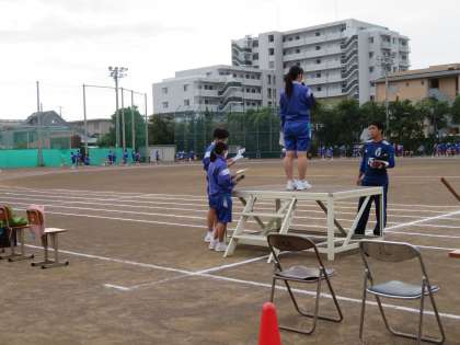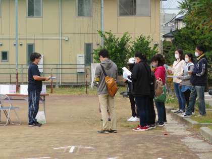 8時10分です。ぞくぞくと応援席に移動しています。実行委員の皆さんは最終確認をしていました。本年度は総練習を行わなかったので、これが唯一の確認の場です。教頭先生はPTA有志の皆さんに、受付や撮影の説明をしていました。PTA有志の皆様、お忙しい中、御協力ありがとうございます。