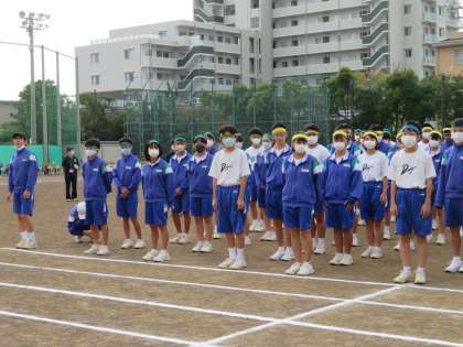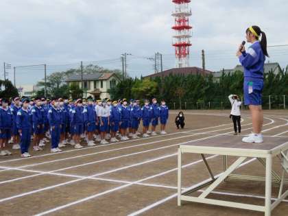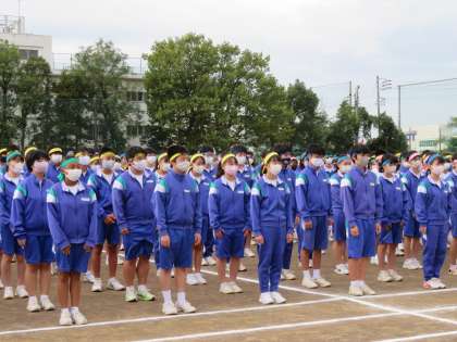 開会式が始まりました。体育の部推進委員長のあいさつです。本年度、初めての全校生徒集合です。