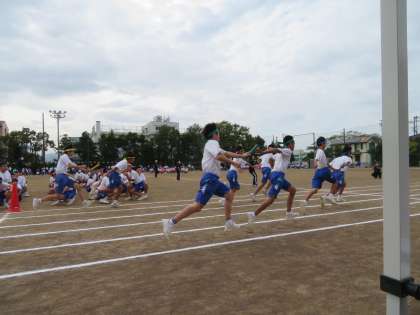 全員リレー 2年の部が始まりました。学級の団結力を見せてください。