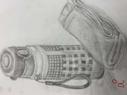 1年 7月のデッサン「水筒とタオル」NO.2