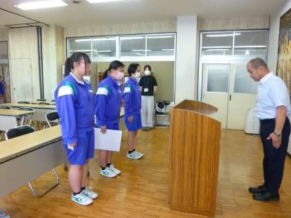 夏の静岡県吹奏楽コンクール東部大会で、金賞を受賞した吹奏楽部の表彰を行いました。