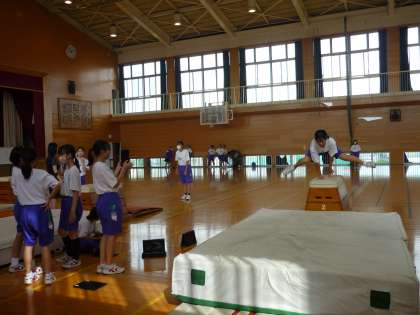 教職員研修センターよりアドバイザーの先生に御来校いただき、保健体育の授業を参観していただきました。22の生徒たちは、技の難易度を上げて跳び箱を跳ぶことに挑戦し、ペアで動画を撮影し合いました。撮影した動画を見ながら、良い点や改善点をアドバイスし合いました。