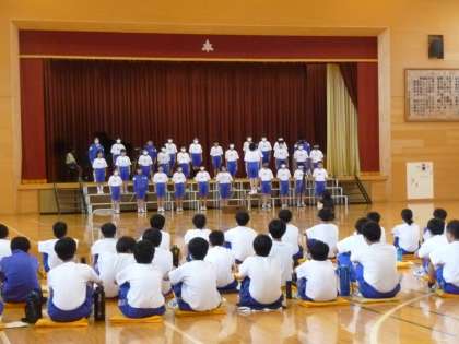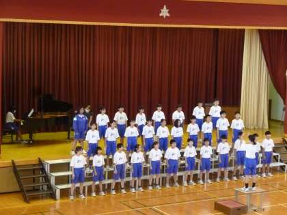 入退場の練習を行い、各クラスの合唱曲を1番だけ歌います。