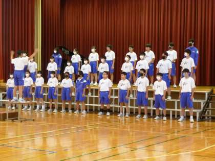 入退場の練習を行い、各クラスの合唱曲を1番だけ歌います。