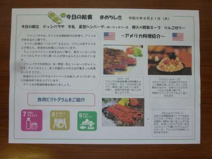 今日は、アメリカ料理献立です。