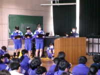 帰りの会の時間帯で、ファミリーでの合唱交流を行いました。