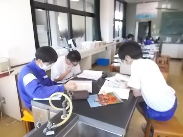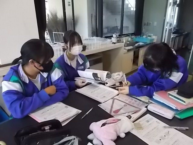 理科の授業です。電気の単元の導入として、静電気を身近に感じる実験をしています。みんな積極的に取り組んでいます。