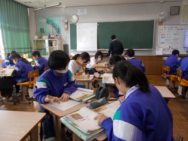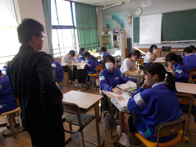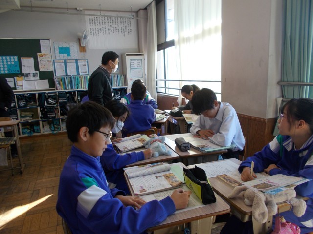 社会科の授業です。歴史について学習しています。後醍醐天皇について調べています。二人の先生で丁寧に学習を進めています。
