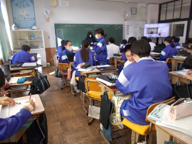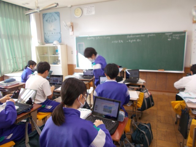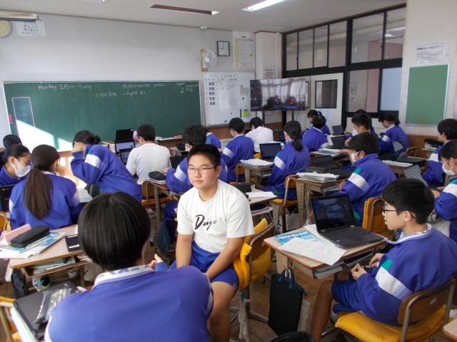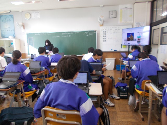 英語の授業です。12月4日(水)に行われ英語のパフォーマンステストに向けて、沼津市の紹介スライドを英語で作っています。