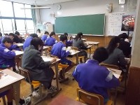 理科の授業です。星座の学習をしています。地球の自転に伴い、星座はどのように動くのか確認しています。今の季節は星がよく見えて星座もわかりやすいです。
