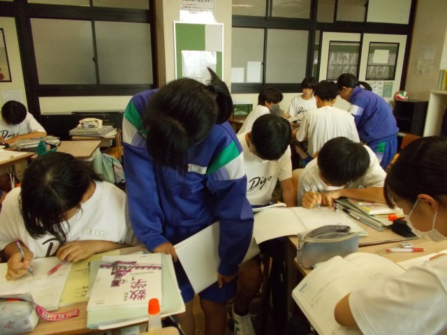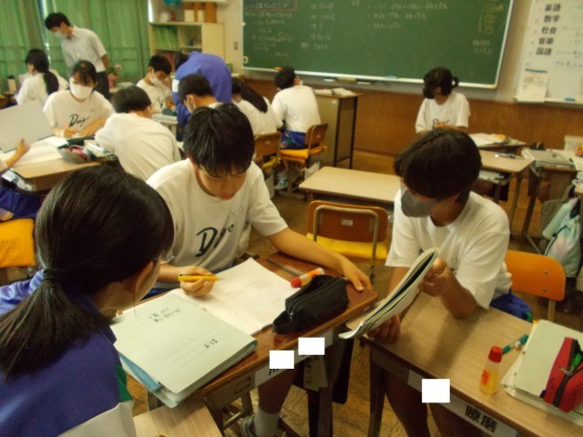 数学の授業です。1年生も分からないことをそのままにせず、みんなで助け合っています。