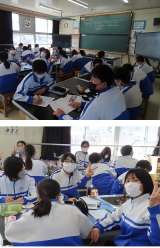 世界と日本の気候を比べています。気温、湿度、降水量について、共通点や異なる点を見いだしていました。