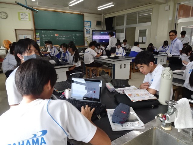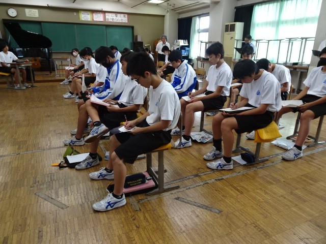 2年A組は理科、2年B組は英語、音楽の公開です。理科は、体の大切な臓器、器官についての学習です。まずは、それぞれの臓器、器官について詳しく調べていました。英語は、懐かしの「Mr.ビーン」の映像を観て、気をつけたいことややってはいけないことについて伝える「命令形」の学習です。音楽は、先日の合唱リハーサルの録音を聴いて現在の課題を見い出すという学習でした。